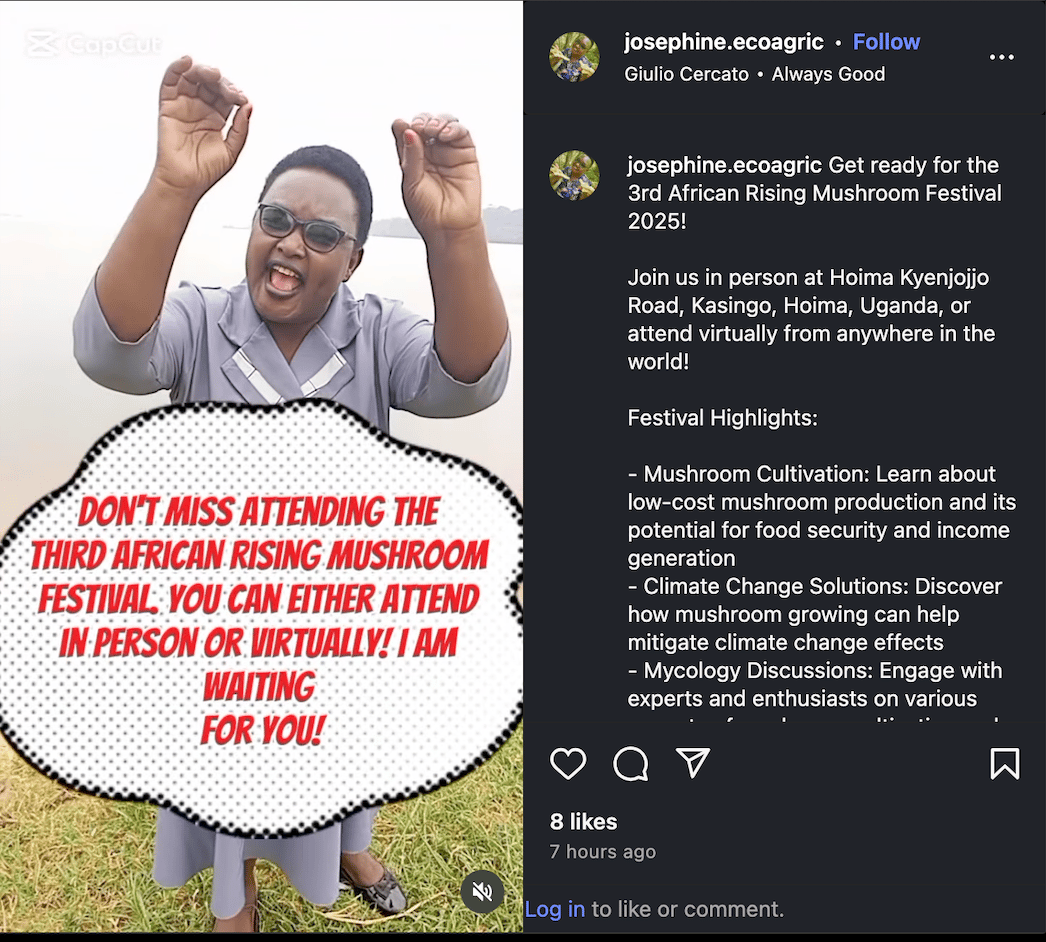 Africa’s first mushroom festival is back for their 3rd consecutive year! The African Rising Mushroom Festival is scheduled to take place in Hoima City, Uganda 🇺🇬 from November 13-15, 2025. This extraordinary event is being hosted by Josephine Nakakande , a powerhouse in the African mycopreneurial world. She’s also a two-time guest on Mycopreneur Podcast ( :
