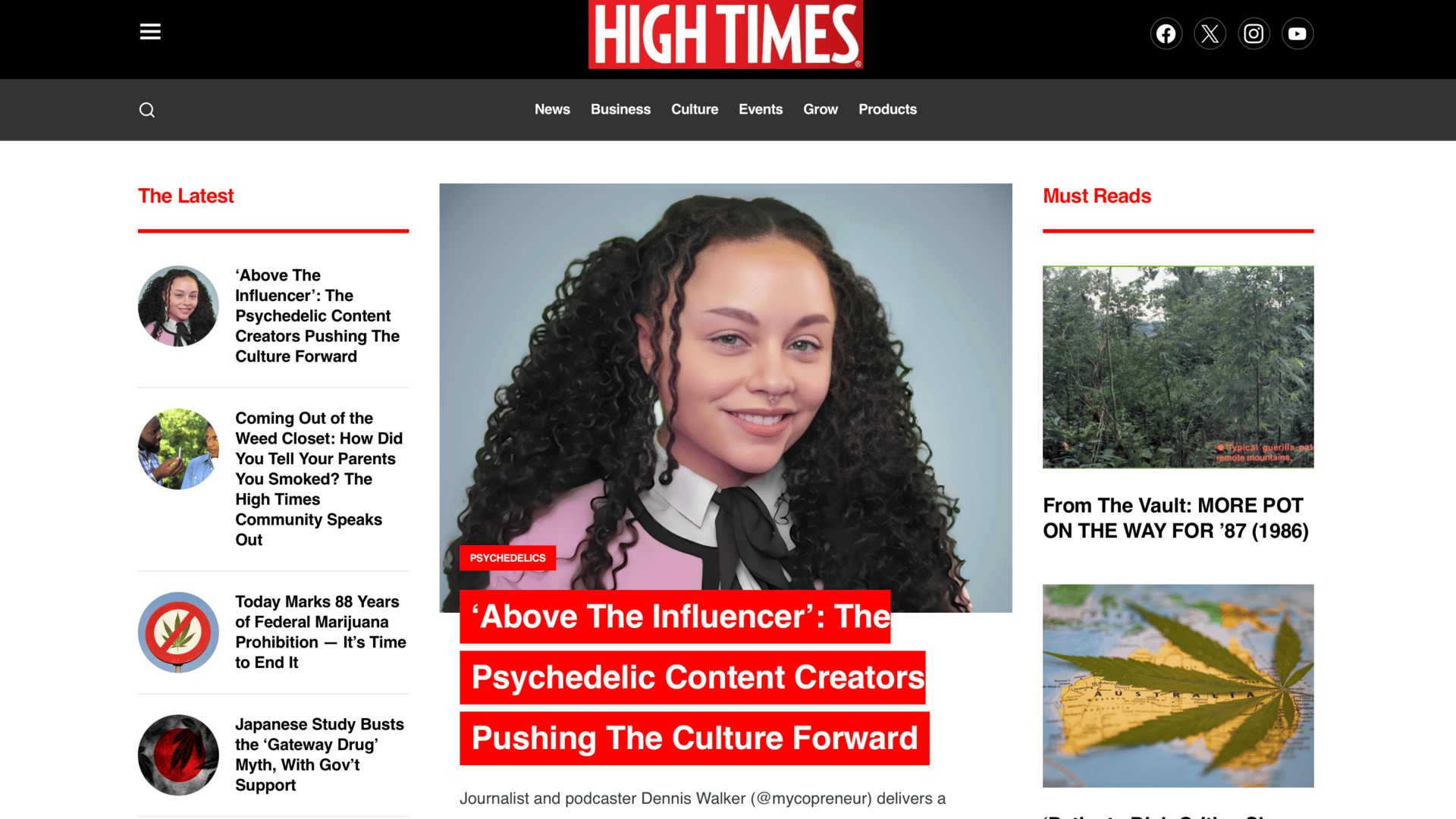 Happy Thursday and welcome to the Mycopreneur Newsletter. This is an indepndent newsletter covering the global mushroom innovation space and a community hub for accelerating mushroom entrepreneurship globally. And wouldn’t you know it, a bunch of our incubator attendees just made it onto the front page of High Times in this article I wrote earlier this week called ‘Above The Influencer: The Psychedelic Content Creators Pushing The Culture Forward’