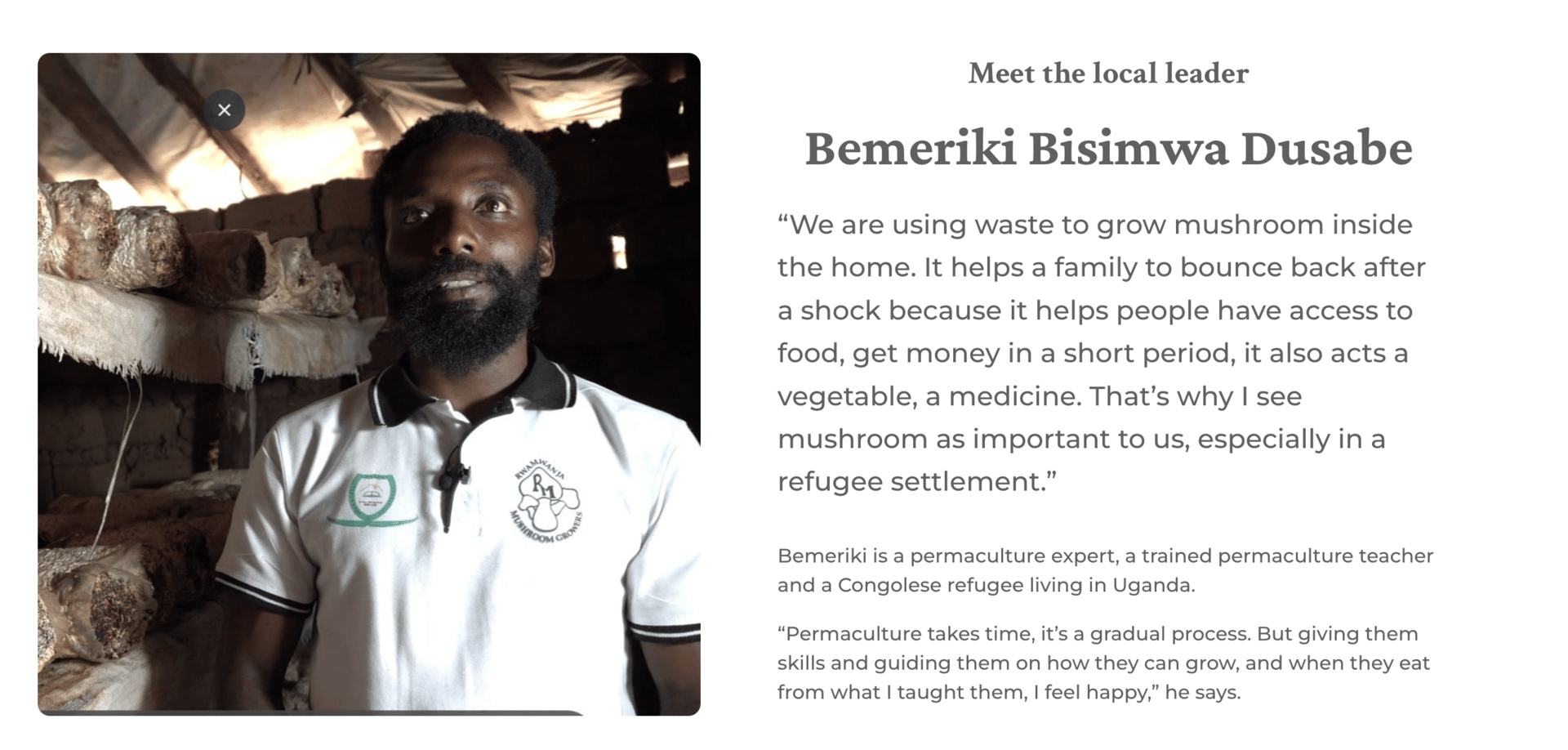 One such example is the Rwamwanja Rural Foundation based in East Uganda. Thus foundation is founded by a Congolese refugee named Bemeriki Bisimwa Dusabe who has been in Uganda for 19 years and learned how to grow mushrooms and create mushroom products like Oyster mushroom coffee, mushroom wine and ‘Mushroom Jelly’ skin cream. This organization teaches refugees in the region how to be self-sufficient through learning the craft of mushroom cultivation and mycopreneurship, enabling them to foster economic opportunity and food security in the most adverse of circumstances. I interviewed Bemeriki and learned that with the recent halting of USAID operations in the region - an agency whose fingerprints are everywhere across Uganda and East Africa - mushroom entrepreneurship has filled a much needed void in regards to supporting abjectly impoverished and disaster-affected communities such as the refugees of Uganda.